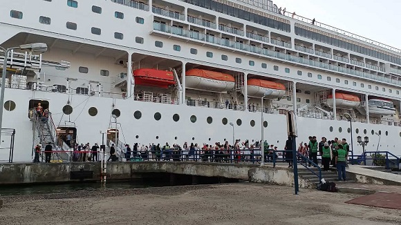 وشهدت ساحة رصيف الميناء السياحي أجواء احتفالية؛ لاستقبال السائحين على أنغام آلة السمسية البورسعيدية والعروض الفنية والاستعراضية التي تعكس التراث الفني الأصيل لمدينة بورسعيد ويرسخ مكانتها على خريطة السياحة العالمية.