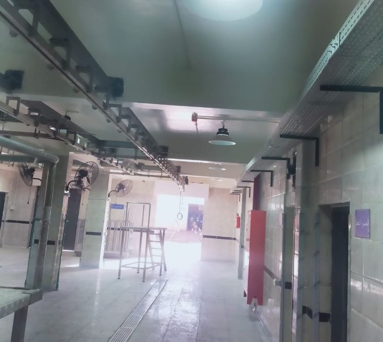 وأوضحت، أن مجزر الحبيل تبلغ مساحته حوالي 4500 م٢ وبلغت التكلفة الاجمالية حوالي 38 مليون جنيه وبطاقة ذبيح 80 رأس / وردية للخط الواحد ، كما تبلغ مساحة مجزر ( هو )