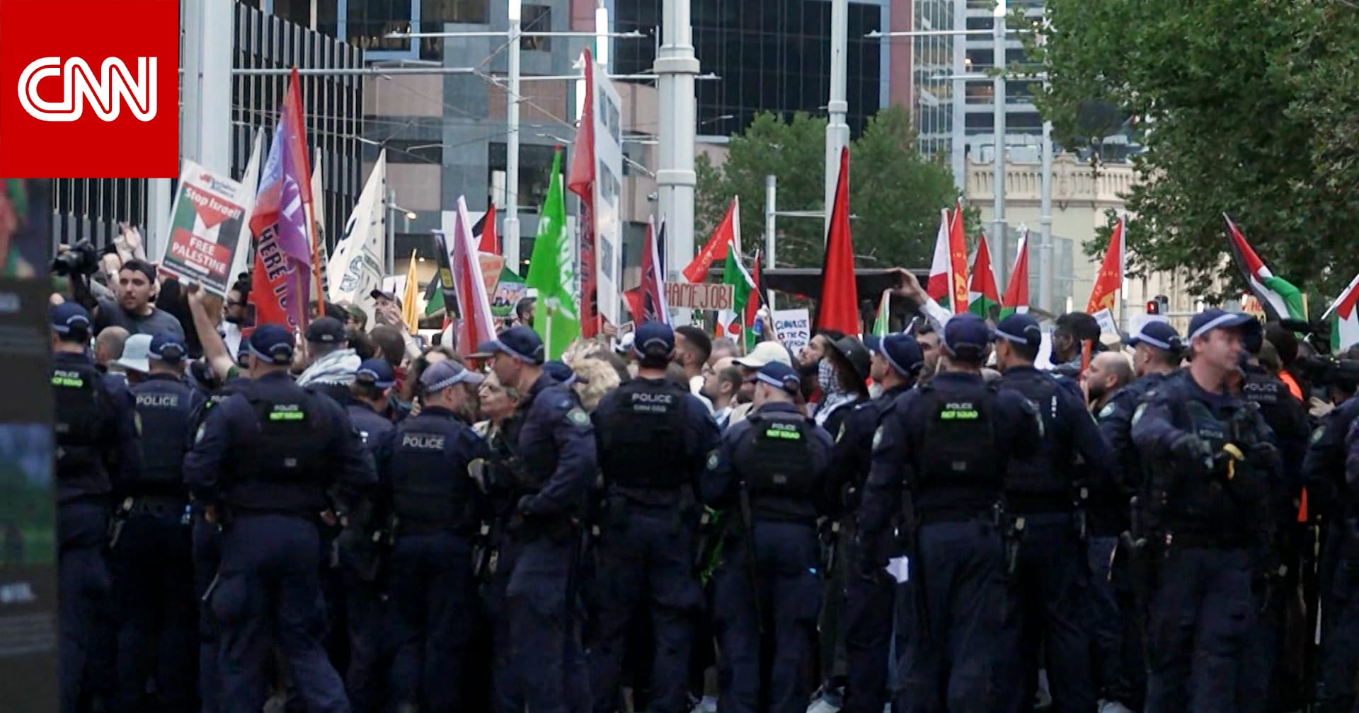 تصاعد التوتر بشكل ملحوظ في أستراليا، حيث منعت الشرطة آلاف المتظاهرين من السير من مبنى البلدية في وسط سيدني باتجاه مركز المؤتمرات، حيث يلتقي إسحاق هرتسوغ بأفراد من الجالية اليهودية في سيدني.